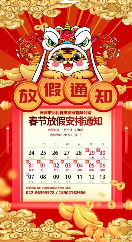 2022天津比利科技放假通知和安排